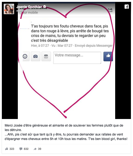 Salut Bonjour Joanie Gonthier , Joanie Gonthier Répond Du Tac Au Tac Aux Critiques D'une Téléspectatrice.
